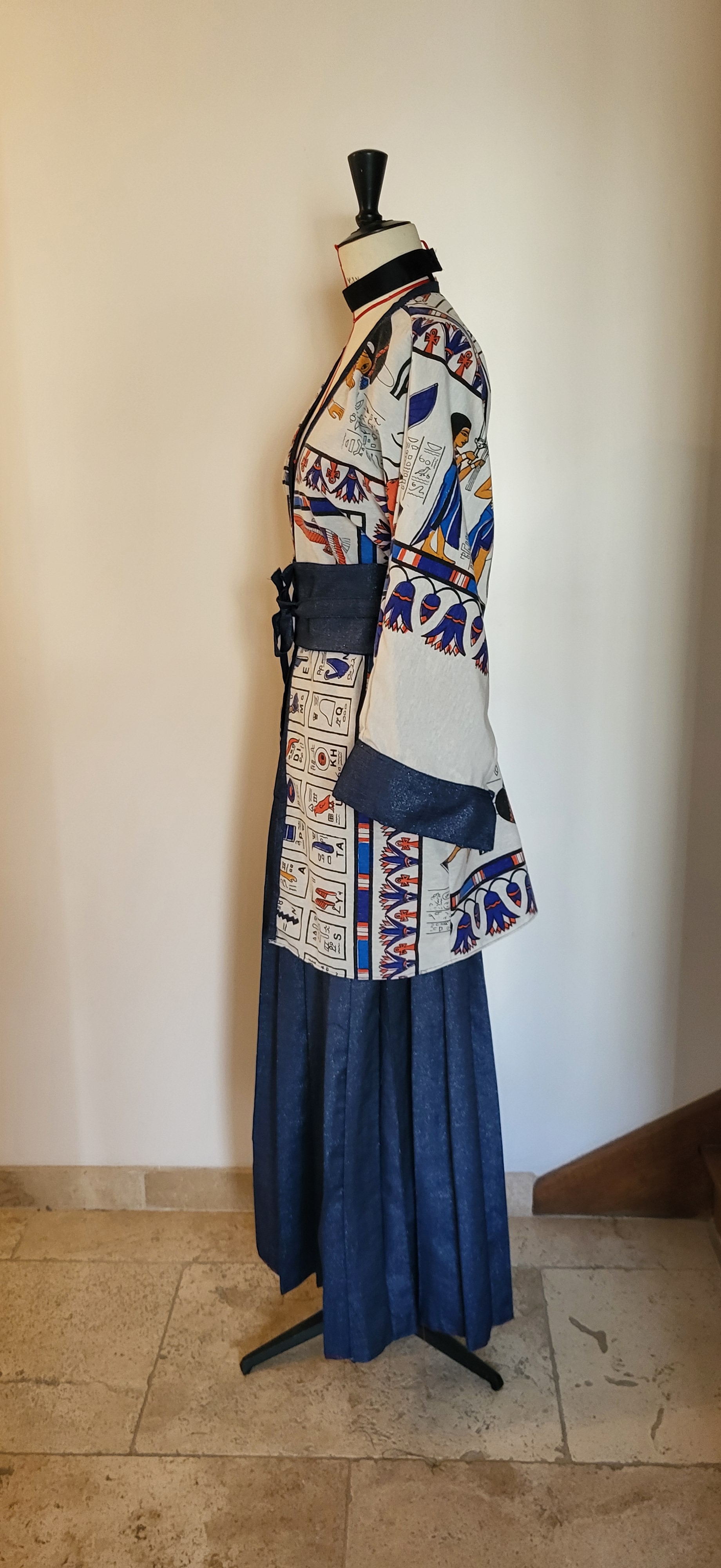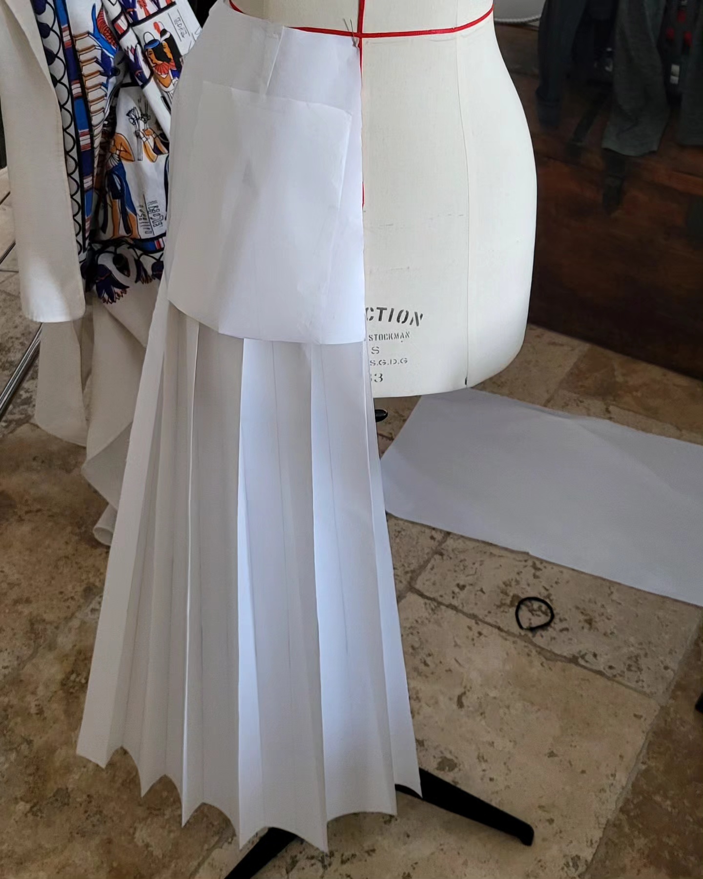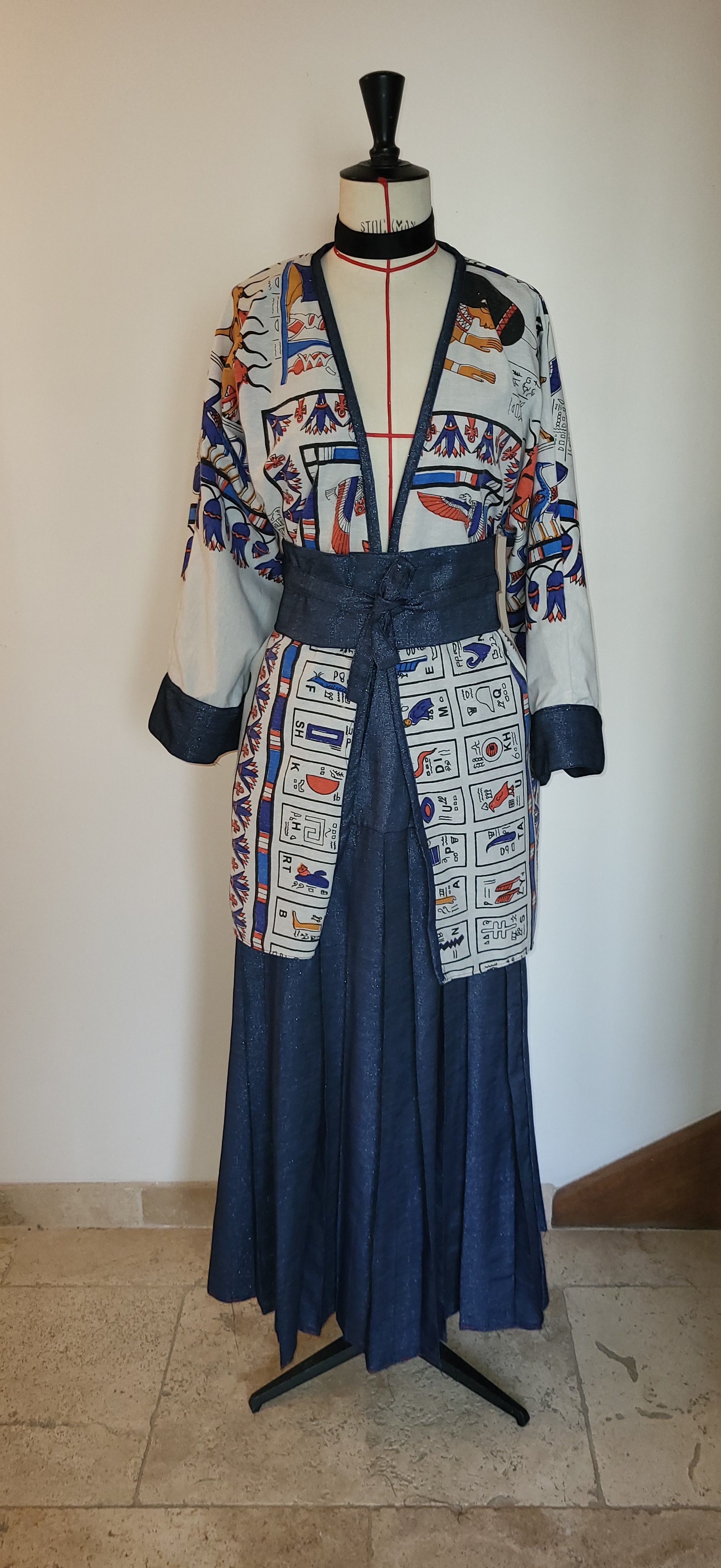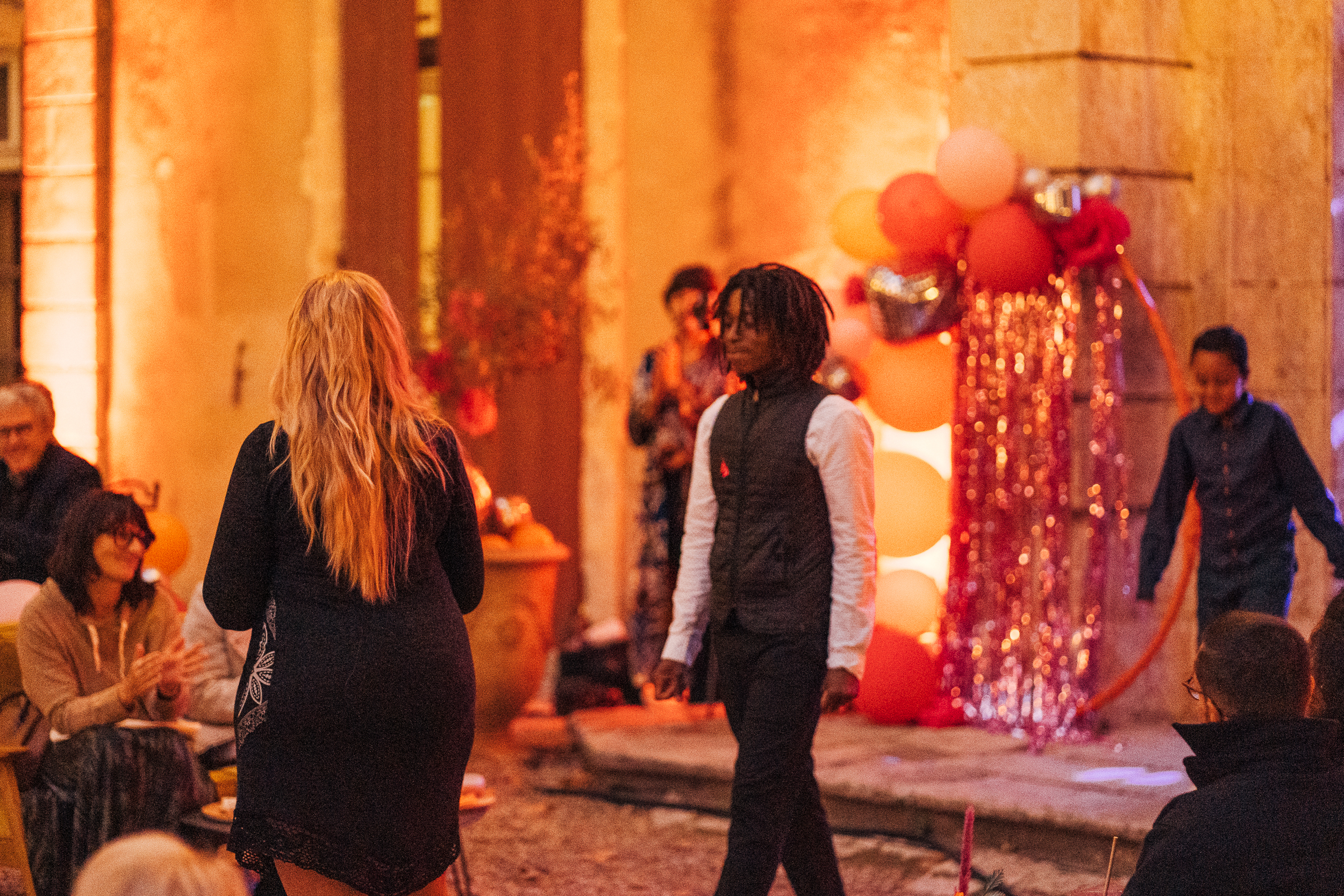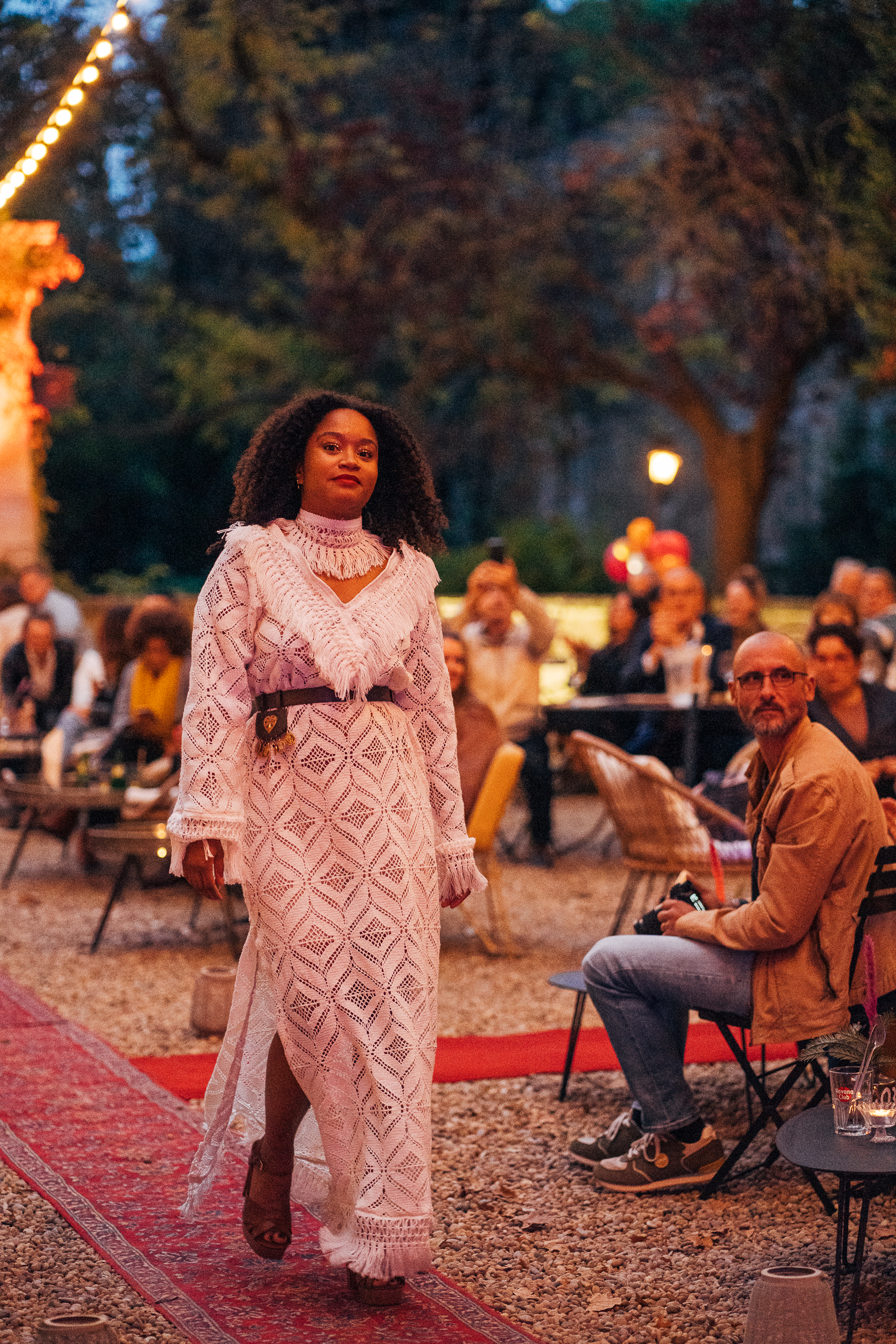 Cet été, je suis passé devant la boutique de Fiona, attiré par l’idée d’utiliser des tissus de seconde main pour créer des vêtements. Elle m’a proposé de réaliser une toile et un kimono en taille 44 afin d’évaluer mon niveau, avant de me lancer sur le défilé au château de Roussan en septembre. Je devais créer deux tenues phares de la collection, ainsi que deux petites vestes.
